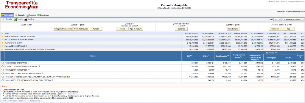 La Municipalidad Distrital de Ocongate, realizó la ejecución presupuestal al 91.6 %, correspondiente al año 2020, según la información de Consulta Amigable del Portal de Transparencia. Lic. Grimaldo Quispe Qquenaya Alcalde.